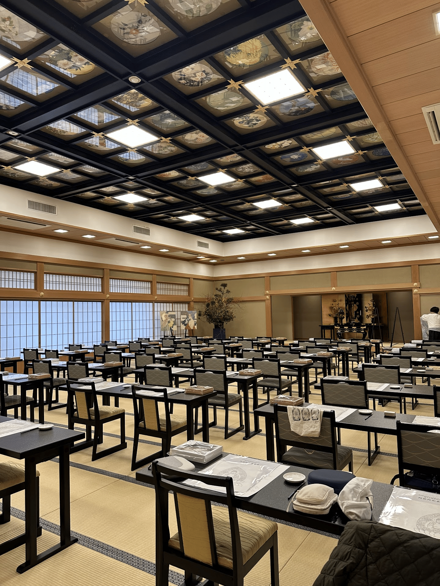光摂殿写仏会場になっている《光摂殿》には120名の日本画家が納めた美しい天井画が納められています。普段光摂殿は非公開のため一般の方は見ることができない天井画です。当日はこの天井画の下で写仏をゆっくりとお愉しみいただきます。