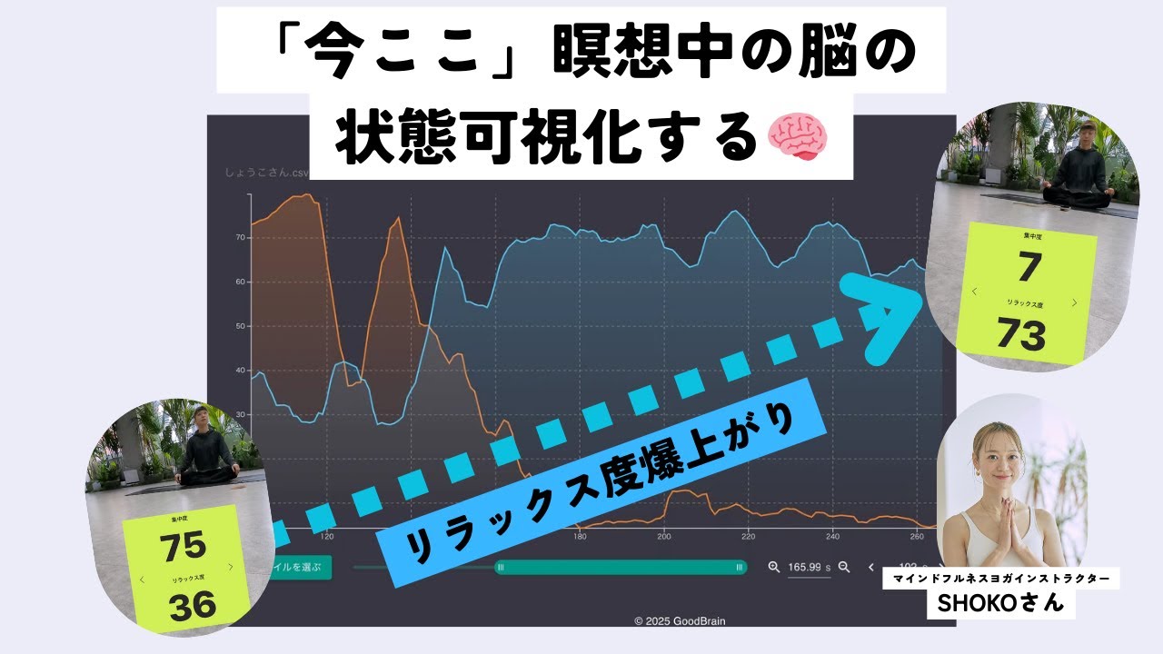【Before→Afterでリラックス脳波爆増❗️】【HSPさんにおすすめ】脳波で見る「今ここ」瞑想🧠マインドフルネスヨガ×SHOKOさん