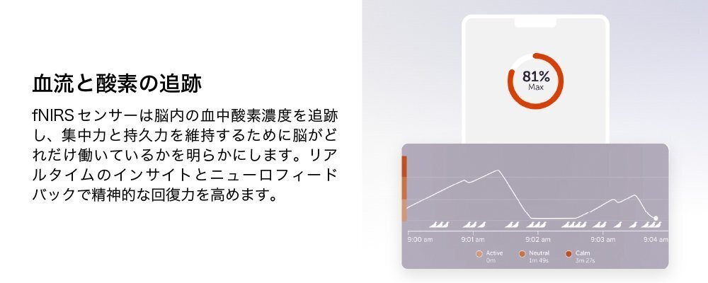 そして脳の回復力。脳がどのようにリセットし、再び最適な状態に戻っていくかを追跡します。良質な休息や瞑想の効果を、推測ではなく実際のデータで確認できるようになります。