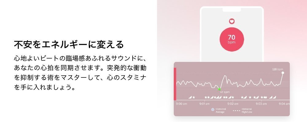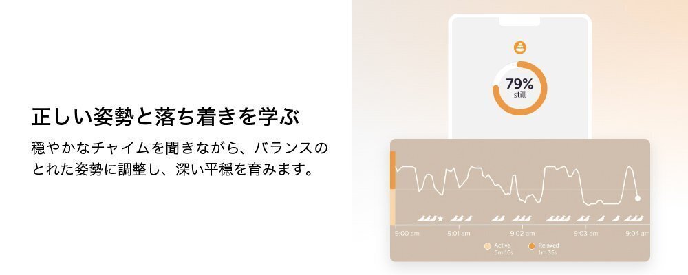 Mind瞑想では、心が深く安らかな状態になると鳥のさえずりが聞こえてきます。これは脳波の状態を瞬時に解析し、本当にリラックスできている瞬間を音で教えてくれる仕組みです。